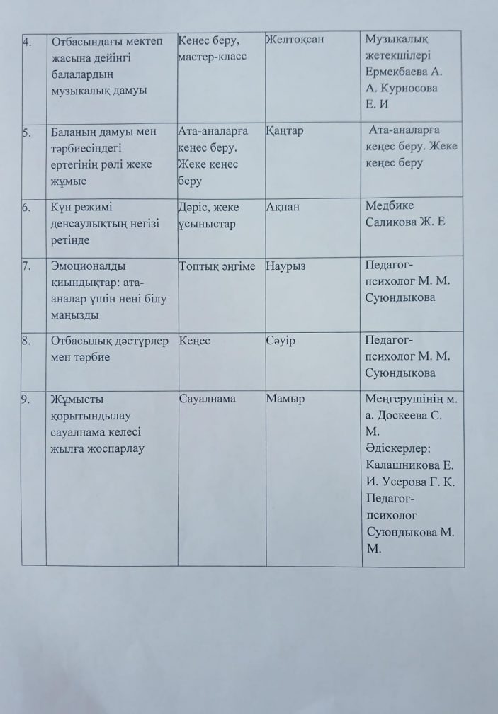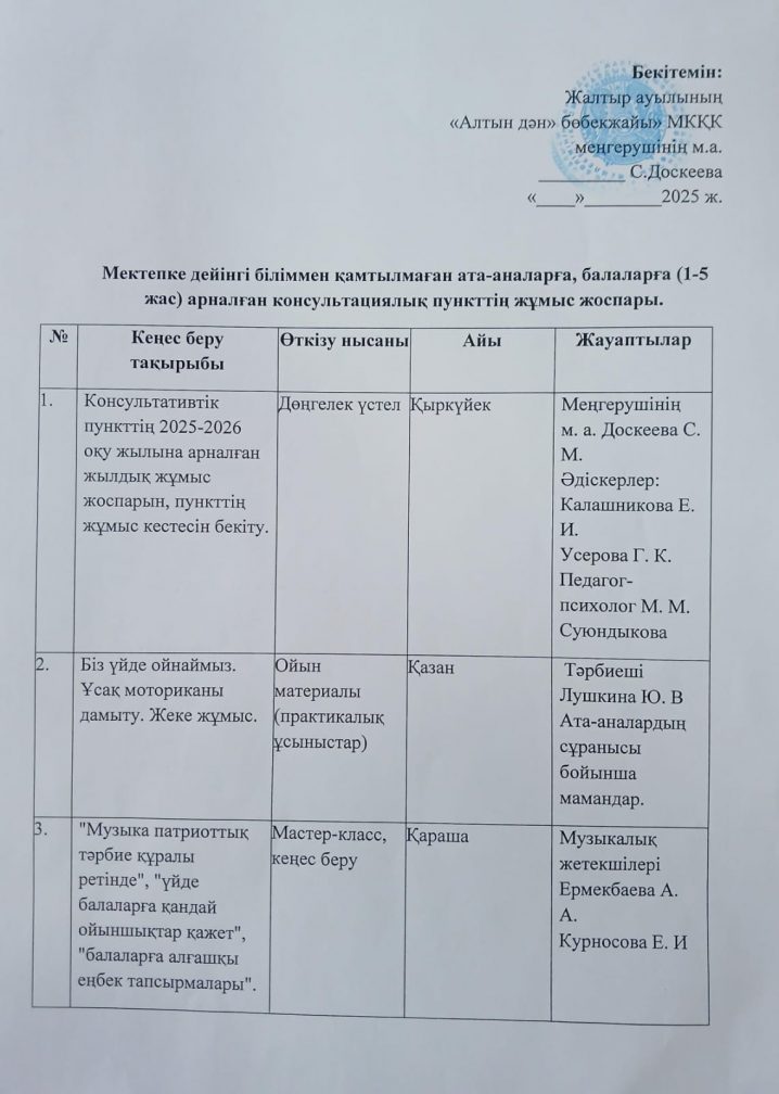Консультациялық орталықтың 2025-2026 оқу жылына арналған жұмыс жоспары